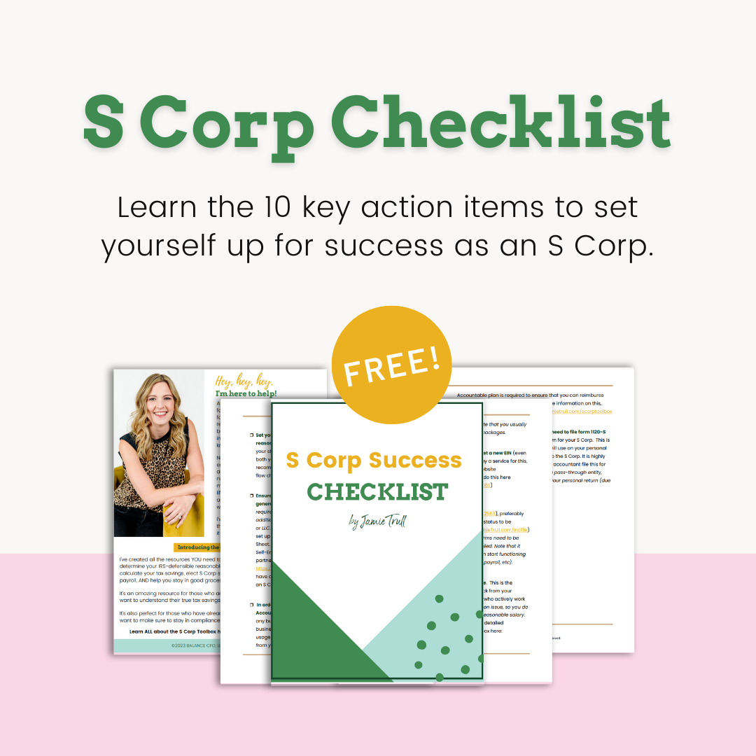 Need guidance on setting the right owner salary for your S Corp? Join our free masterclass, The Savvy S Corp Owner: Getting Your Salary Right, hosted by Jamie Trull, to ensure you're not missing out on essential strategies that can save you from IRS audits, penalties, and overpaying taxes!